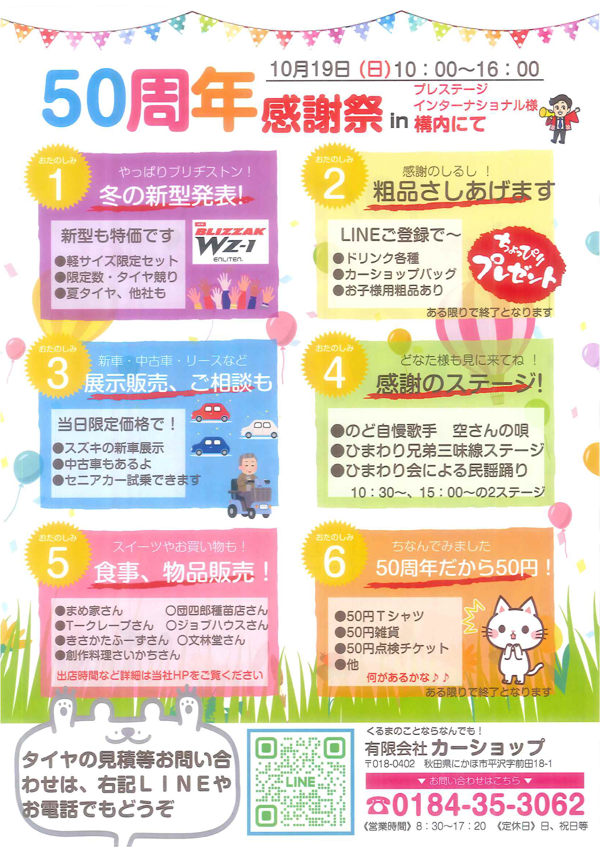 【イベント出店】「カーショップ50周年記念感謝祭」に出店します(揚げ物) 10月 19日(日) @ 10:00 AM - 4:00 PM « 【イベント出店】仁高祭に出店します(揚げ物) 【イベント出店】「ハロウィンパーティー2025 in 東由利」に出店します(揚げ物) » + Google カレンダー+ iCal エクスポート 詳細 日付: 10月 19日(日) 時間: 10:00 AM - 4:00 PM イベント タグ: イベント催事出店, 揚げ物, 有限会社カーショップ 会場 株式会社プレステージ・インターナショナル 秋田BPOにかほキャンパス 018-0402 秋田県 にかほ市, 平沢堺田84-1 + Google マップ